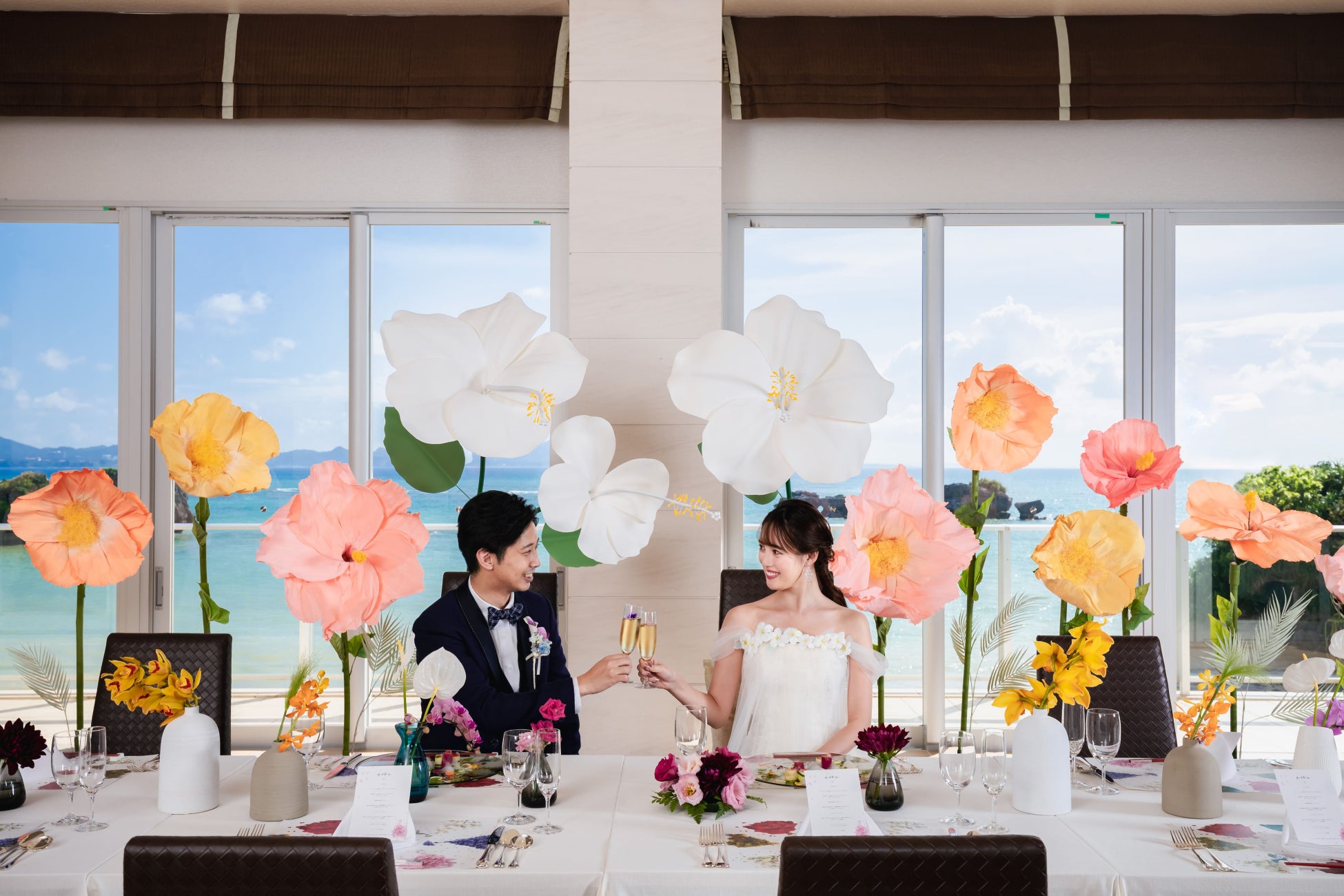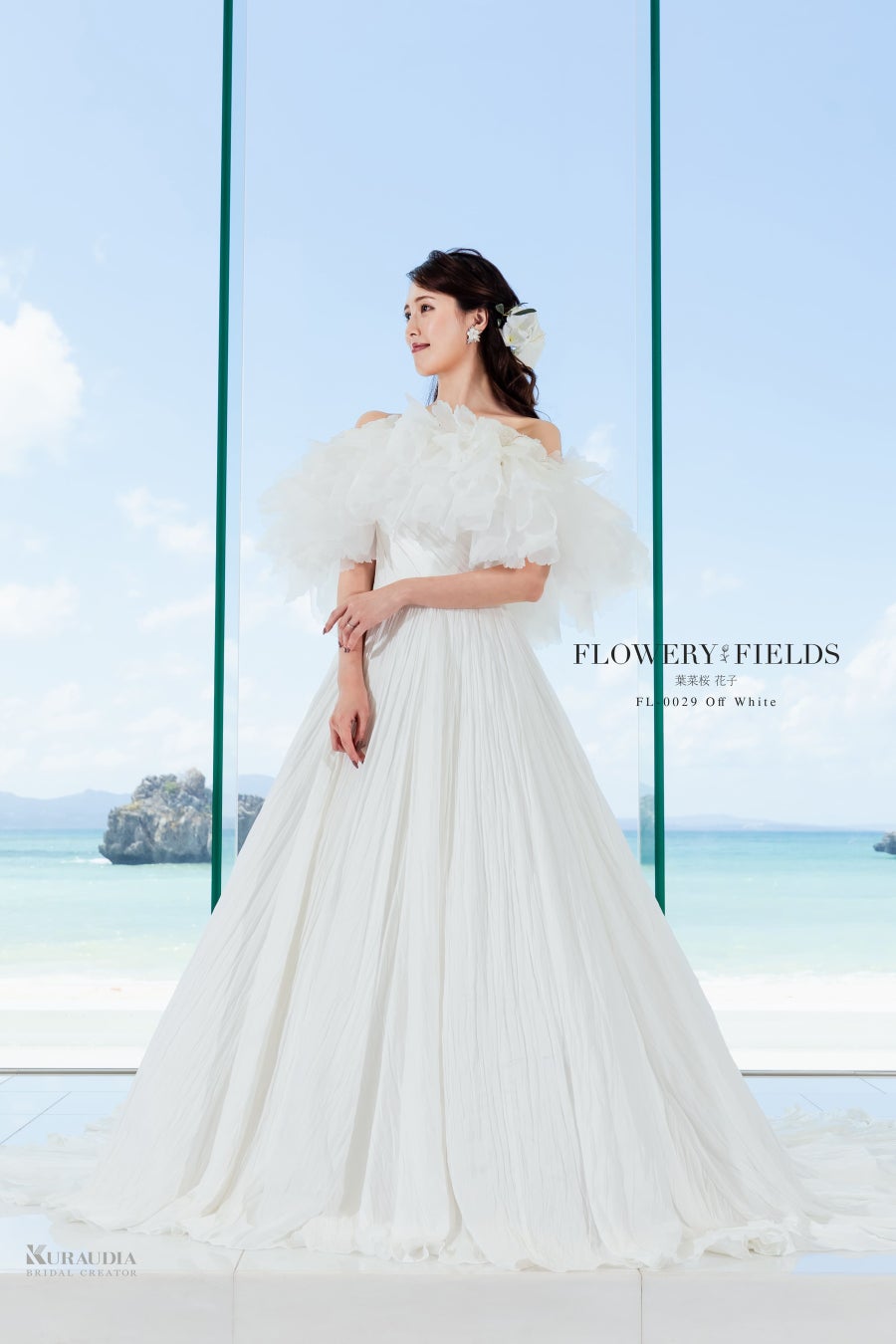 "葉菜桜 花子"が手がけるウエディングドレスコレクションの新作「FLOWERY FIELDS 葉菜桜 花子」×「アイネス ヴィラノッツェ 沖縄」の発表を記念して、挙式プランとパーティープランが新登場!