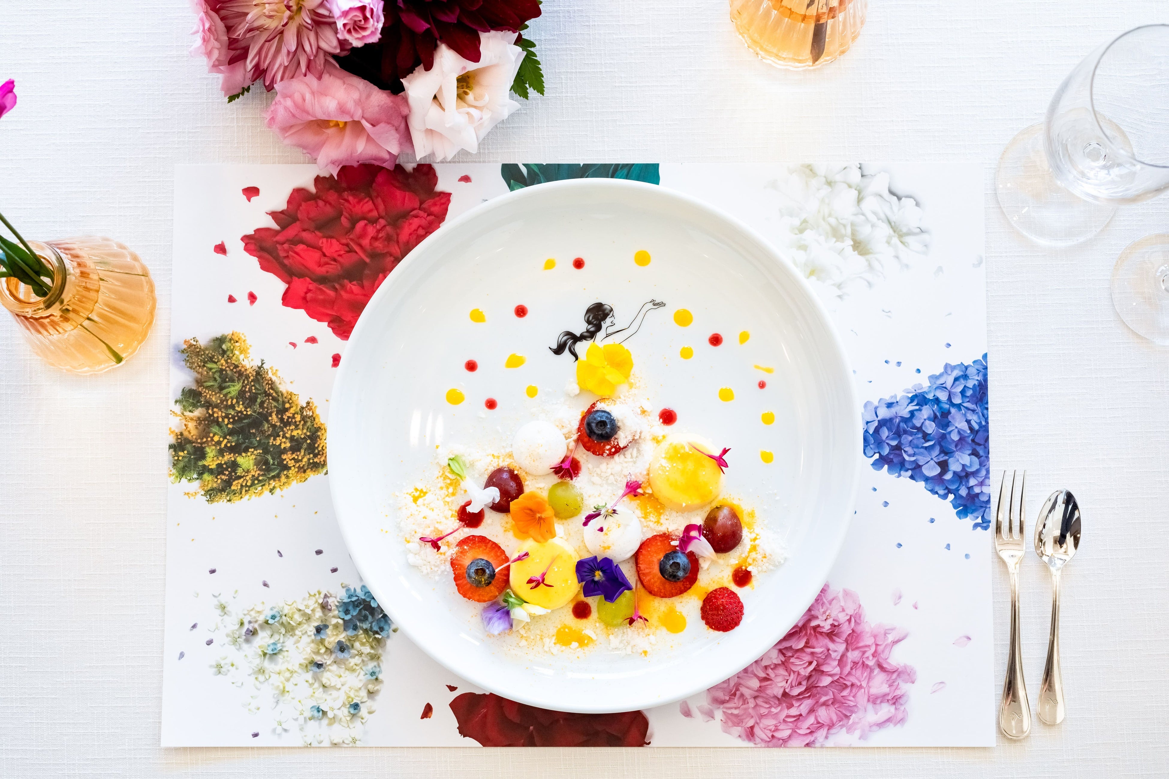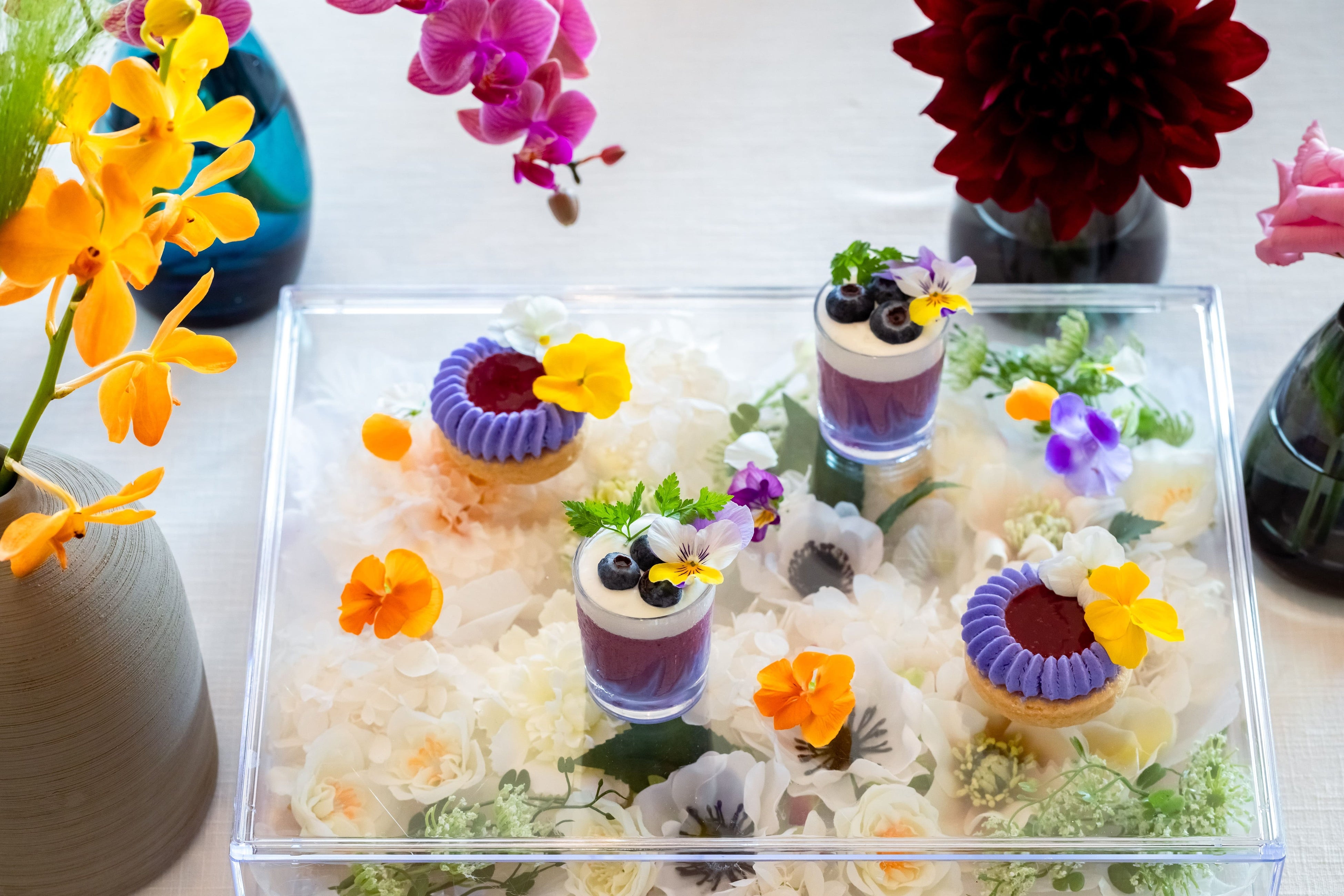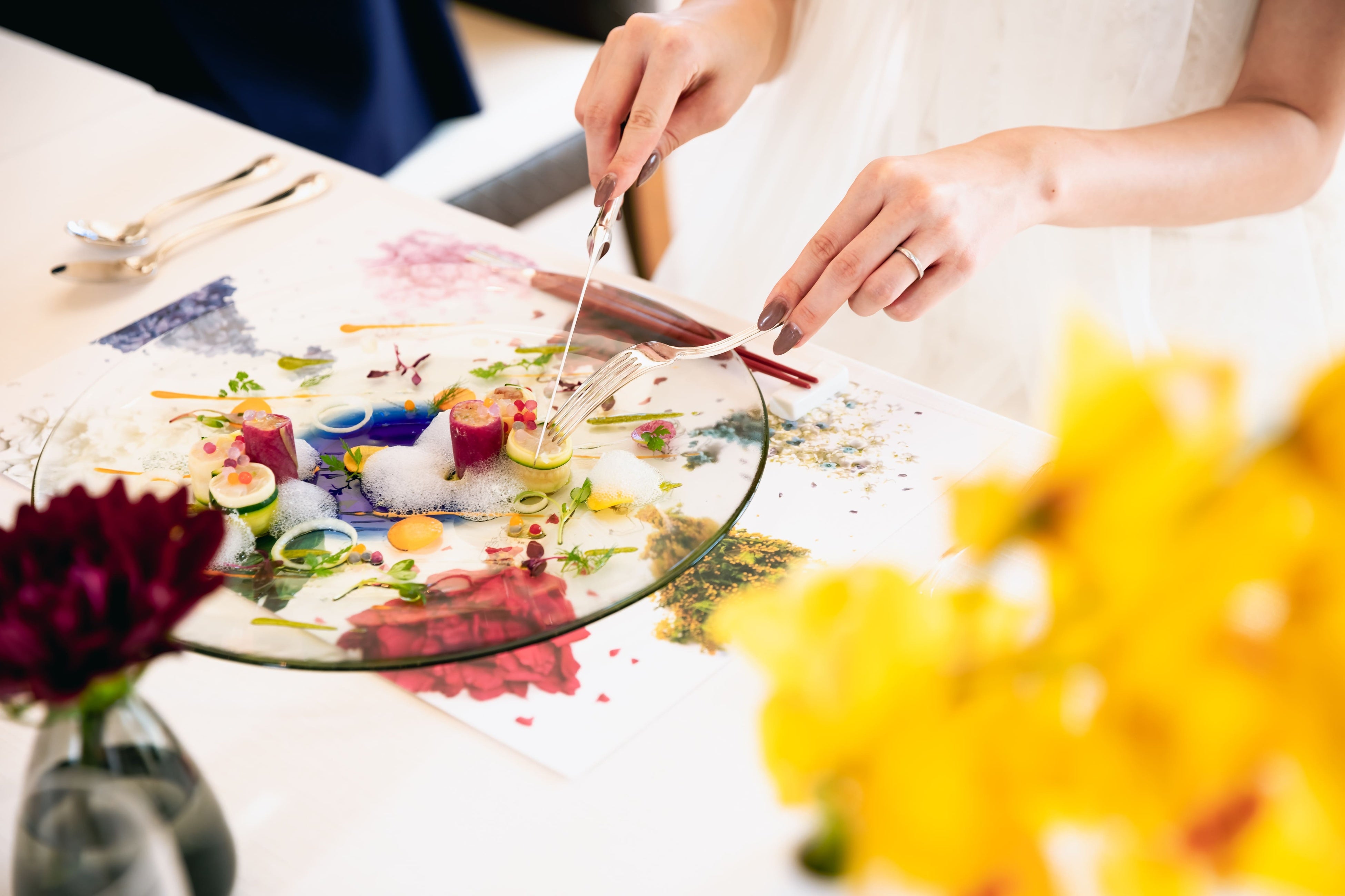 アイネス ヴィラノッツェ 沖縄自慢のお料理、スイーツも、「FLOWERY FIELDS」 とコラボレーション。オリジナルプレートを用いた色鮮やかなお料理で、おふたりやゲストの皆様にご堪能いただきます。