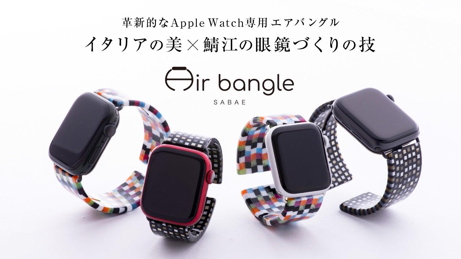 日本一の生産量を誇る鯖江の眼鏡づくりの技を活かした『鯖江バングルウォッチ』を手がけてきた私たちは、これまでにない美しさと快適さを兼ね備えた、革新的なApple Watch専用「Air Bangle」を開発しました。