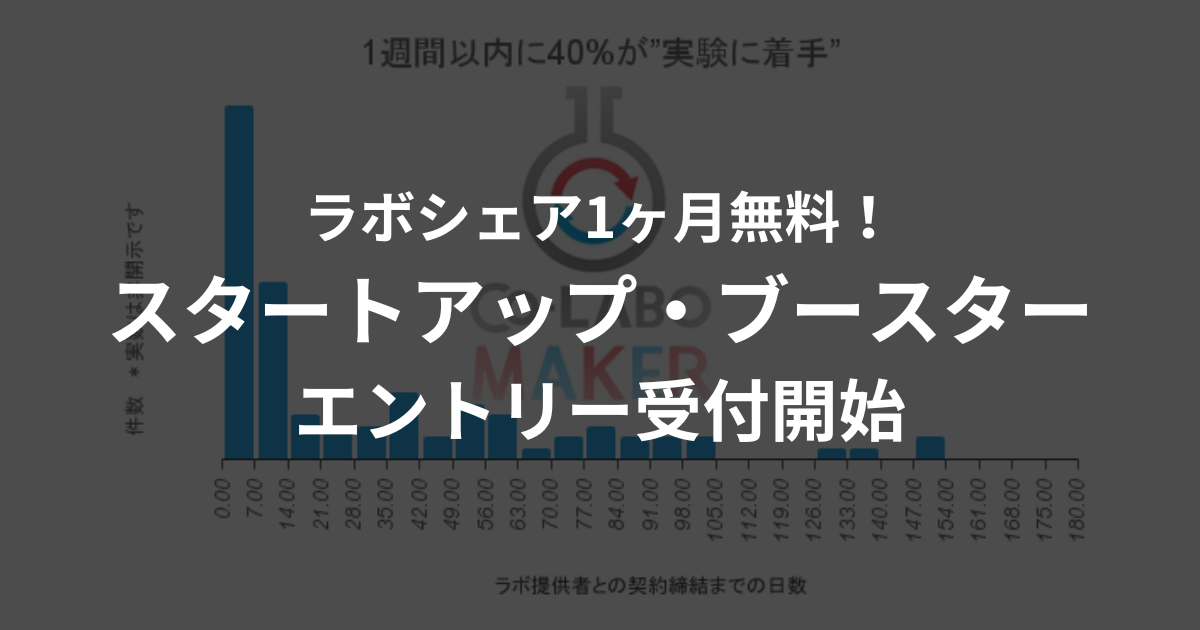 スタートアップ・ブースターは、研究者が大学などの実験設備や機器(以下、ラボといいます)を利用できる当社のサービス、”ラボシェア”の期間限定キャンペーンで、当社として初の試みです。2月末までに当社のキャンペーンページ(https://sub.co-labo-maker.com/campaign_startup_boooster_2023feb_entry)を通じて応募いただいた方を対象に、当社が研究計画の先進性、実現性、社会へのインパクトを審査。際立った計画10件に、ラボシェアの料金を1か月無料とする特典を付与します。審査結果の発表は、3月中旬を予定しています。