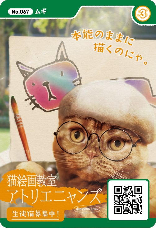 サウナに入っている猫いたり、画家猫がいたり、合体してビームを出す猫がいたりと、ユーモラスなニャンズカードが30種類に増量して店頭に並びます。本キャンペーンより初お披露目のニャンズカードも20種ございますのでお見逃しなく。