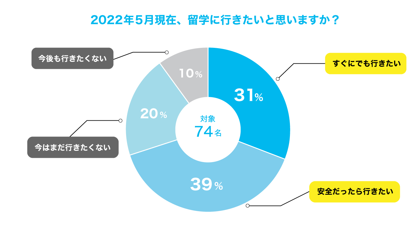 約70%のユーザーが、留学に「今すぐ行きたい」「安全なら行きたい」と回答