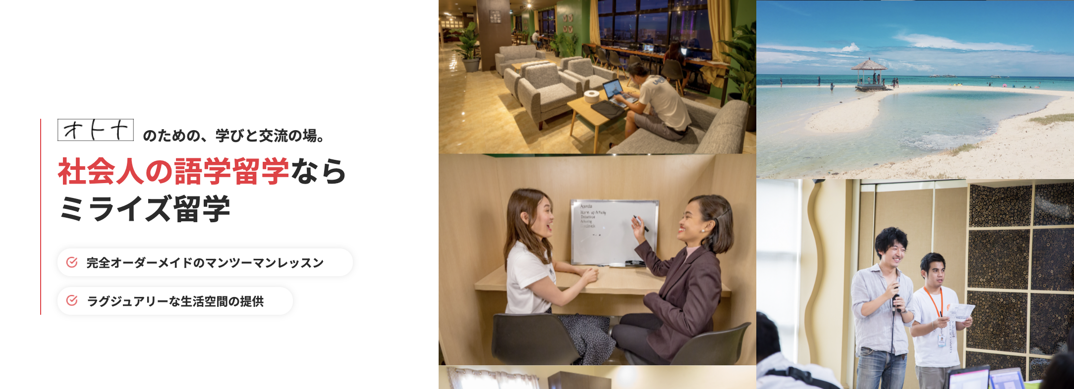 日本国内で語学サービス(英語コーチング/通学/オンライン英会話)、フィリピン・セブ島で語学学校を運営するMeRISE株式会社(ミライズ株式会社、本社:東京都渋谷区、代表取締役:呉宗樹 以下「当社」)は「社会人のための語学留学」をコンセプトに持つ「ミライズ留学(https://ryugaku.merise.asia/)」を2022年6月27日(月)より、コロナ禍を経て2年ぶりに再開することを発表した。