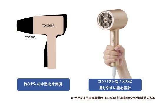 半世紀以上にわたりヘアツールの開発に携わってきたテスコムの知見と技術をもとに提案する「モイスチャーイオン™ ヘアドライヤー TDX300A」は、毎日のヘアドライから、髪をいたわる”ヘアケア”習慣へと導く新しいツールとして、お客様へお届けいたします。