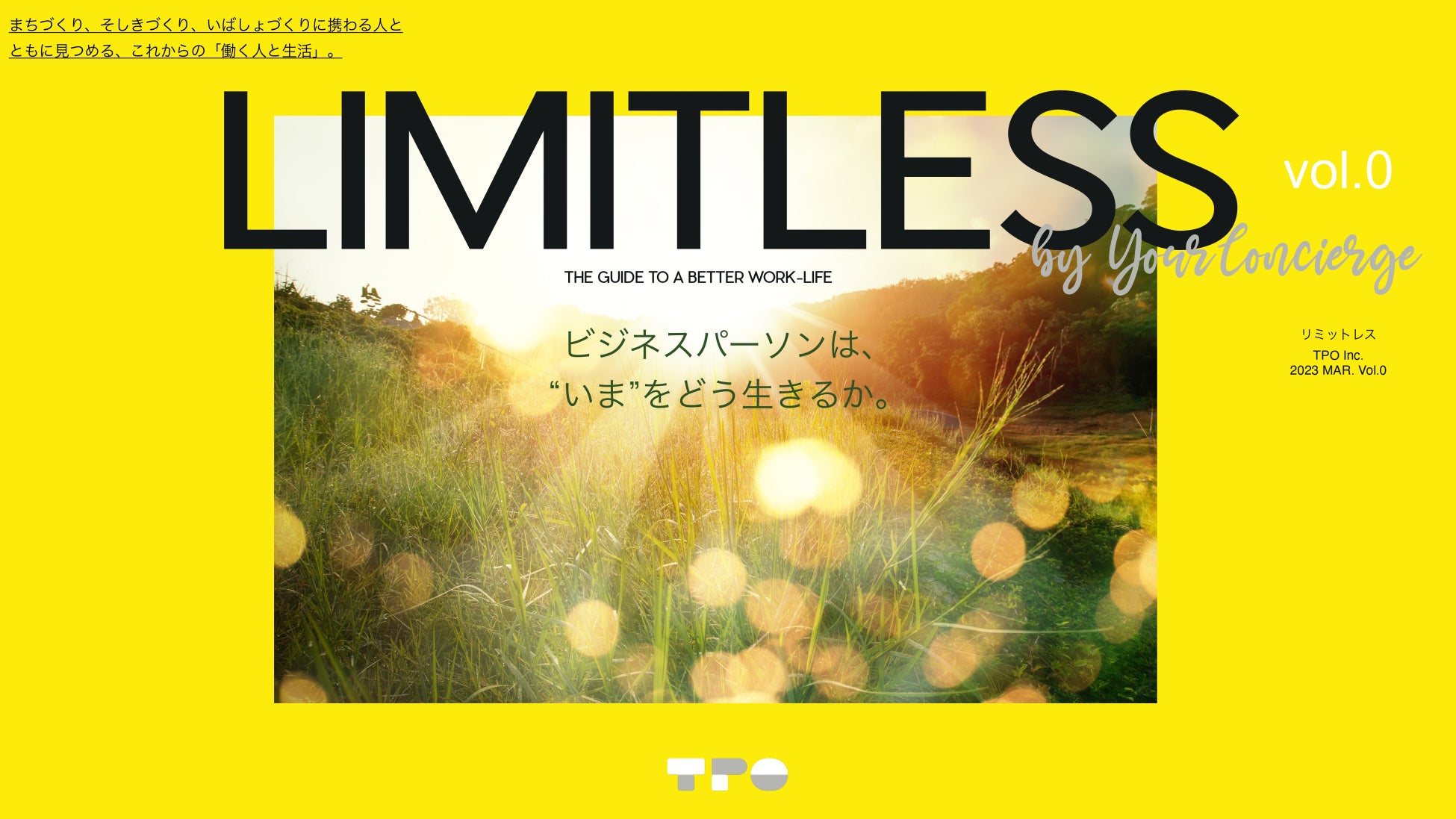株式会社TPO(本社:東京都港区、代表取締役:マニヤン麻里子、以下「TPO」)は、まちづくり、 そしきづくり、いばしょづくりに携わる人と「働く人と生活」を見つめ、ともに問題提起をするメディア『LIMITLESS』の提供を開始したことをお知らせいたします。