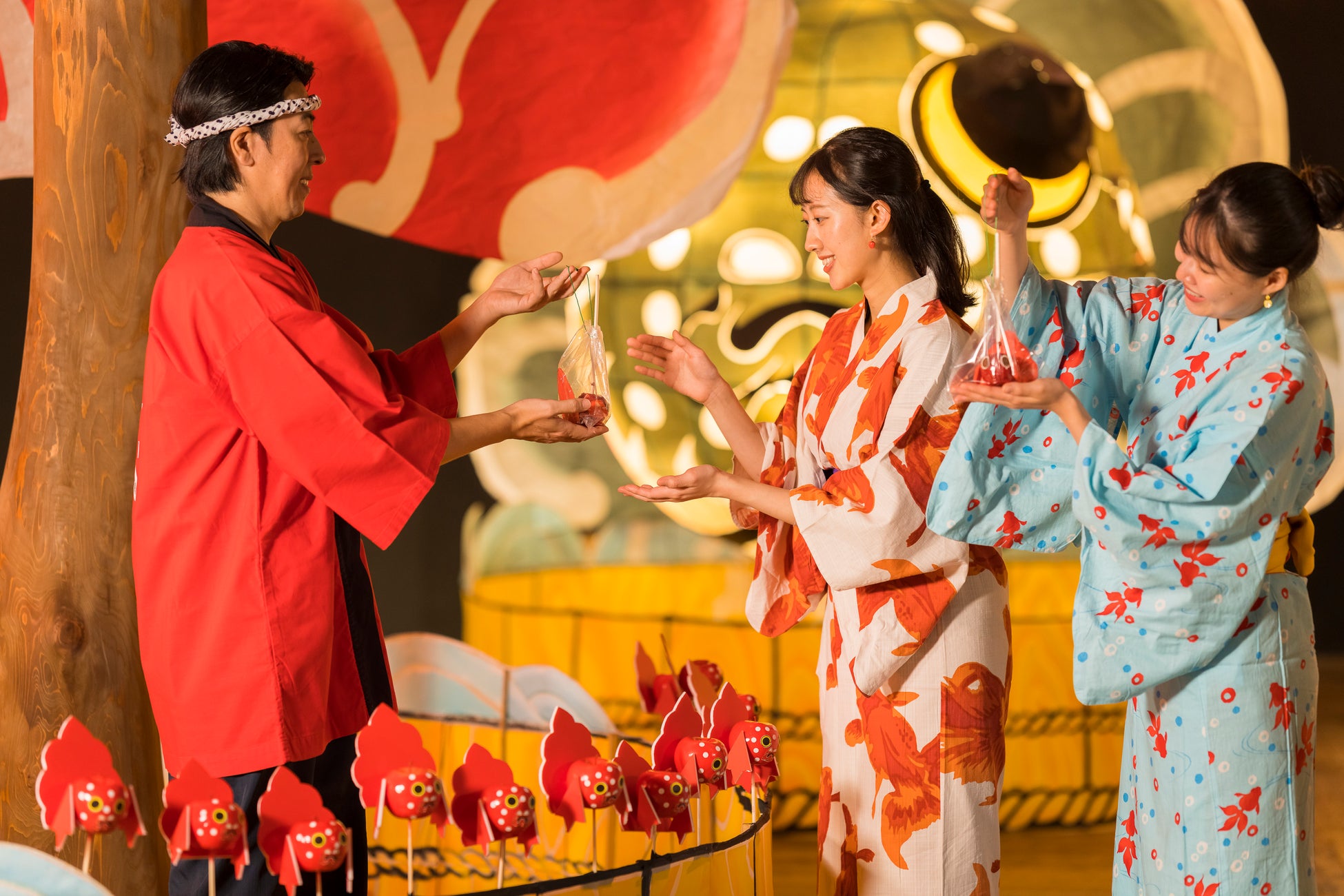 祭りをはじめとする青森の文化を目一杯満喫できる青森屋では、青森の四季折々の風情を楽しんでいただきたく、季節ごとの風物詩をテーマにイベントを実施しています。夏に実施するのは、青森の夏祭りの時期に街中で飾られる金魚型の灯篭「金魚ねぷた」をテーマにした、暑い夏に涼を感じられる「しがっこ金魚まつり」です。金魚ねぷたは昔、津軽藩で藩士のみが飼うことができたという金魚に、人々が憧れて作ったものが由来と言われ(*2)、青森の夏の象徴として、現在に至るまで愛されてきました。このイベントでは、金魚ねぷたにまつわる体験を通じ、夏祭りの雰囲気に胸が高鳴り、青森の夏を目一杯満喫できます。