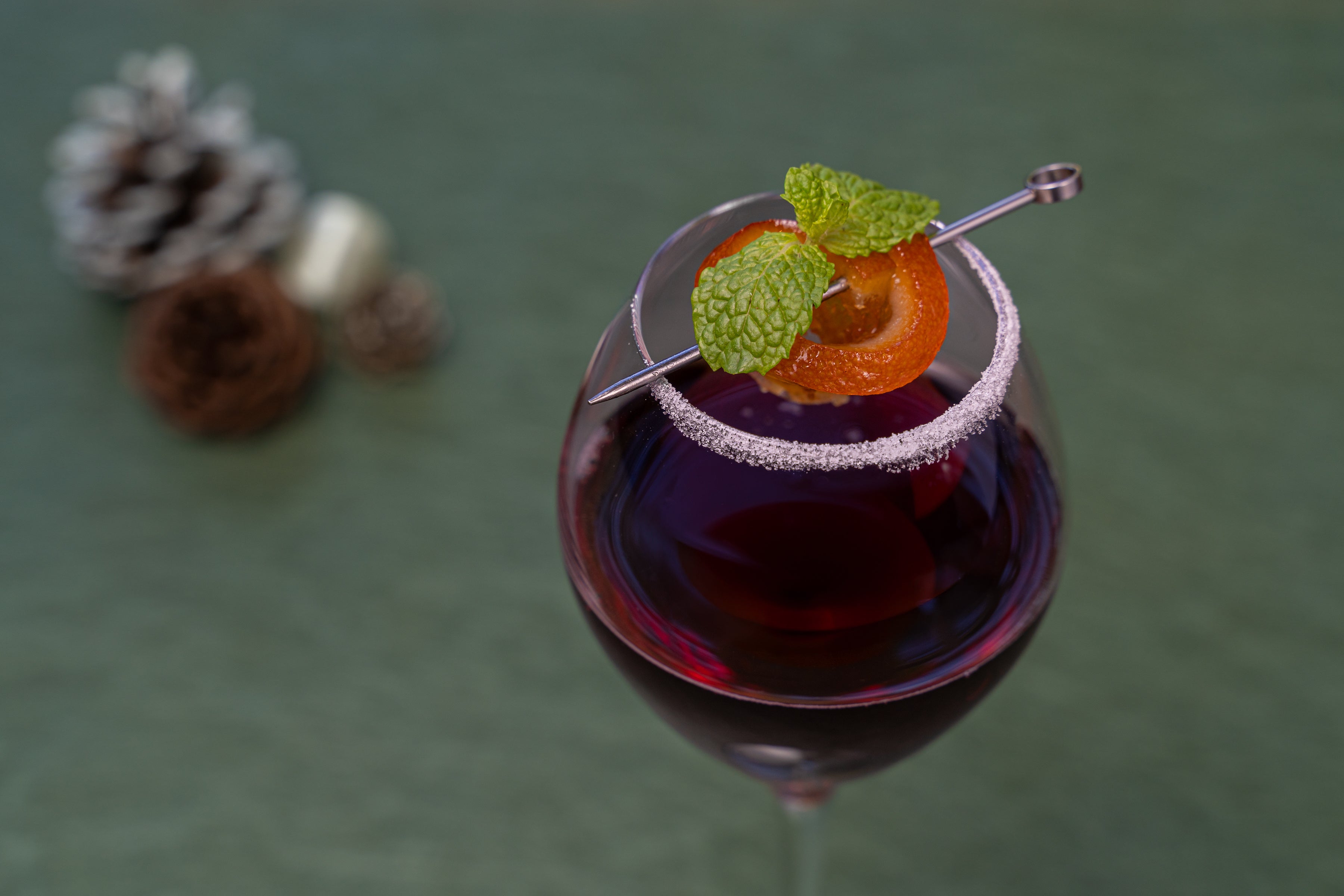 ホリデー気分を高めるクリスマス・スペシャルドリンクとして、フランス語で“森の実”という名前のモクテル『Noix de Forêt』をご用意いたしました。ノンアルコールの赤ワインにカルダモンやクローブなどのスパイスで香り付けしたクリスマスにぴったりな一杯です。グラスの縁に砂糖を付け、赤と白の華やかなクリスマスカラーに仕立てています。
