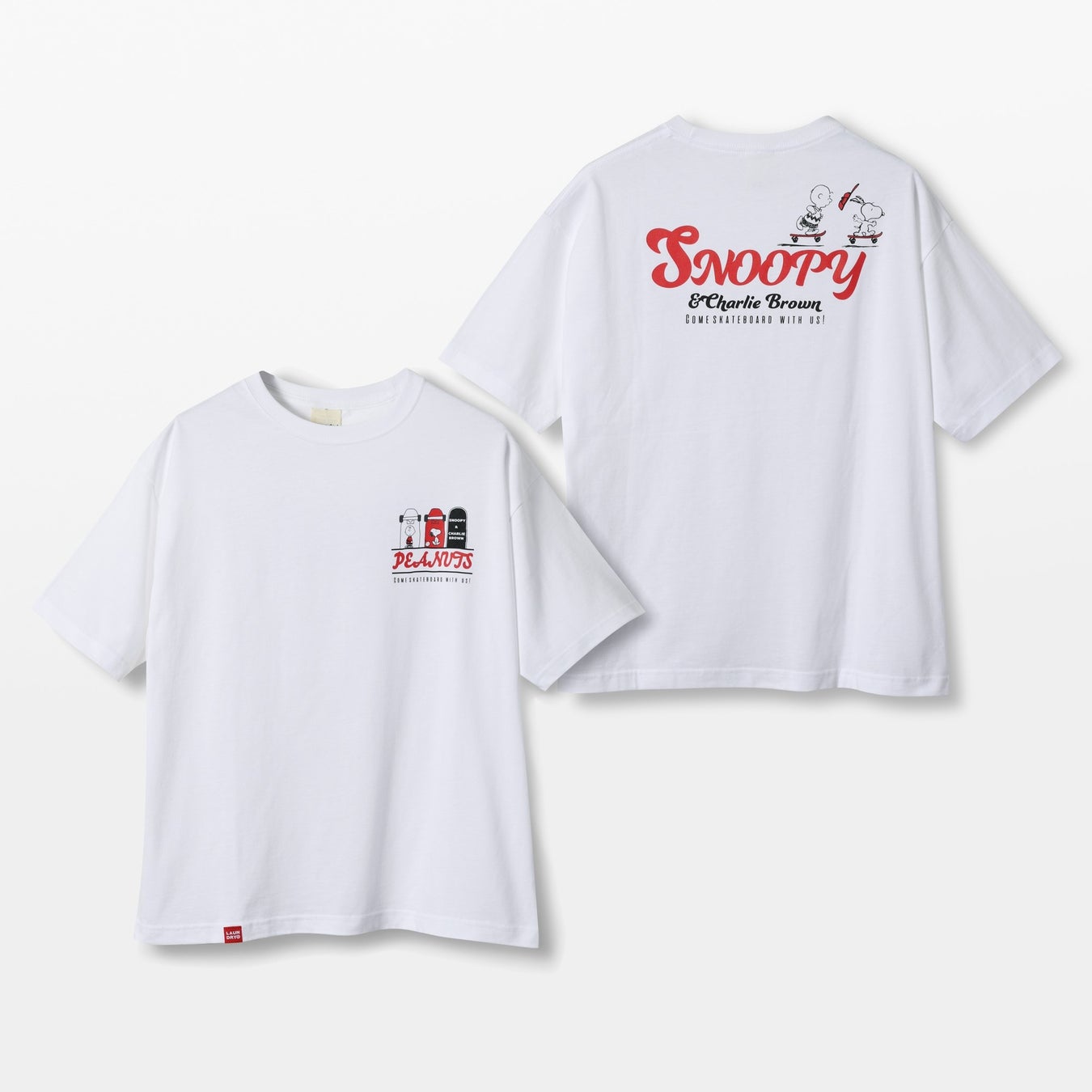 スケートボードに描かれたチャーリー・ブラウンとスヌーピーや、インパクトのあるロゴと、スケートボードを楽しむふたりなど、LAUNDRYオリジナルのデザイン。