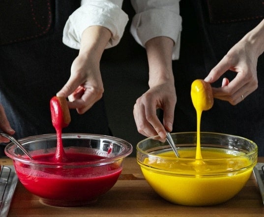 カラフルなソースの色、味、香りはできる限り素材から取り出したものを使用した手作りソース。ひとつひとつ色や香りを確かめながら丁寧にコーティングして仕上げています。