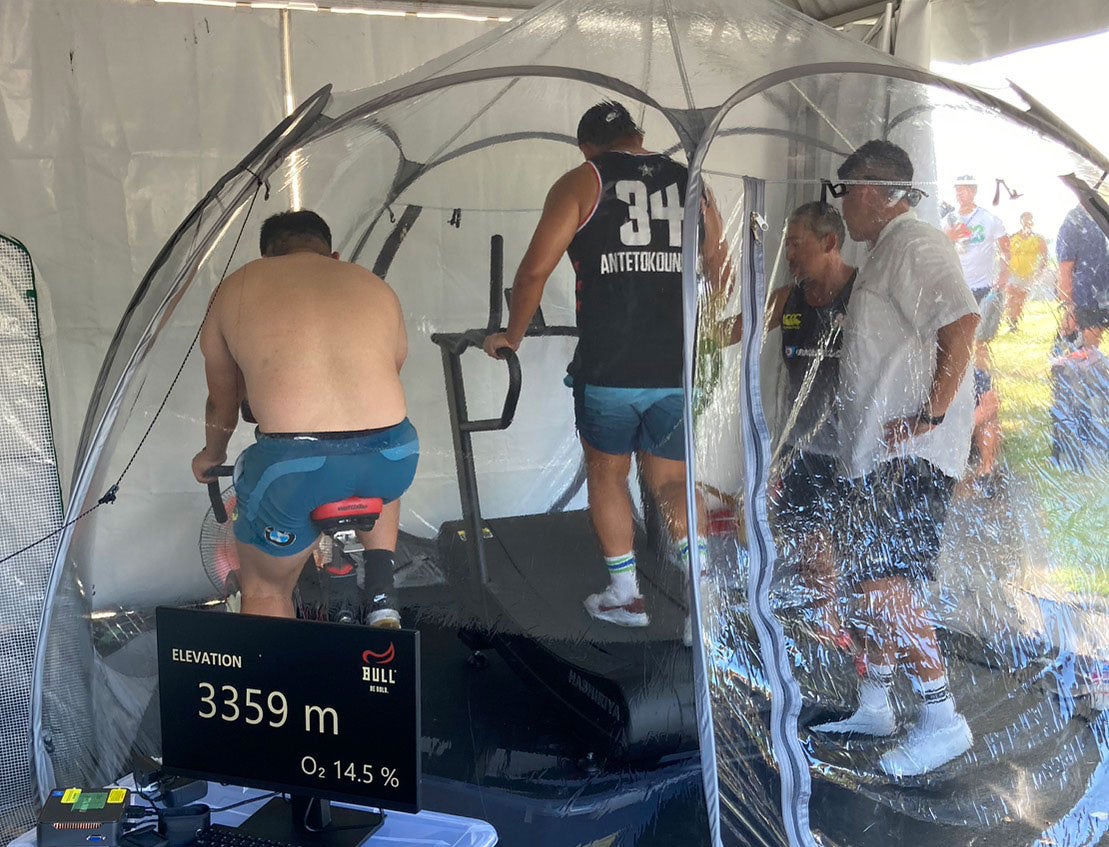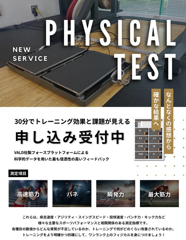 他にも、高地トレーニング環境を再現する低酸素ブースや高速筋力、バネ、瞬発力、最大筋力を測定できる機材(PHYSICAL TEST)も設置。