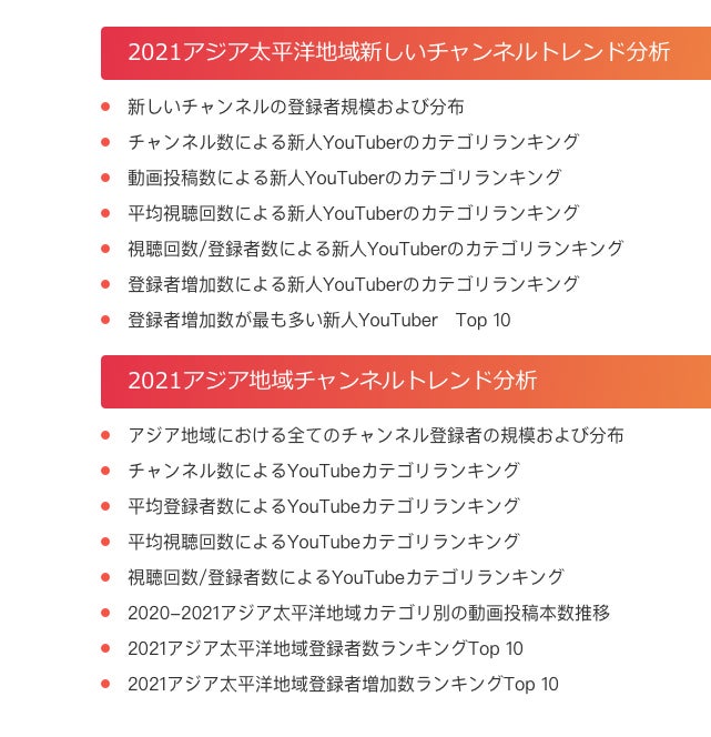 2.調査対象/アジア太平洋地域の2021新規チャンネル及び全てのチャンネル(登録者数1000人以上)