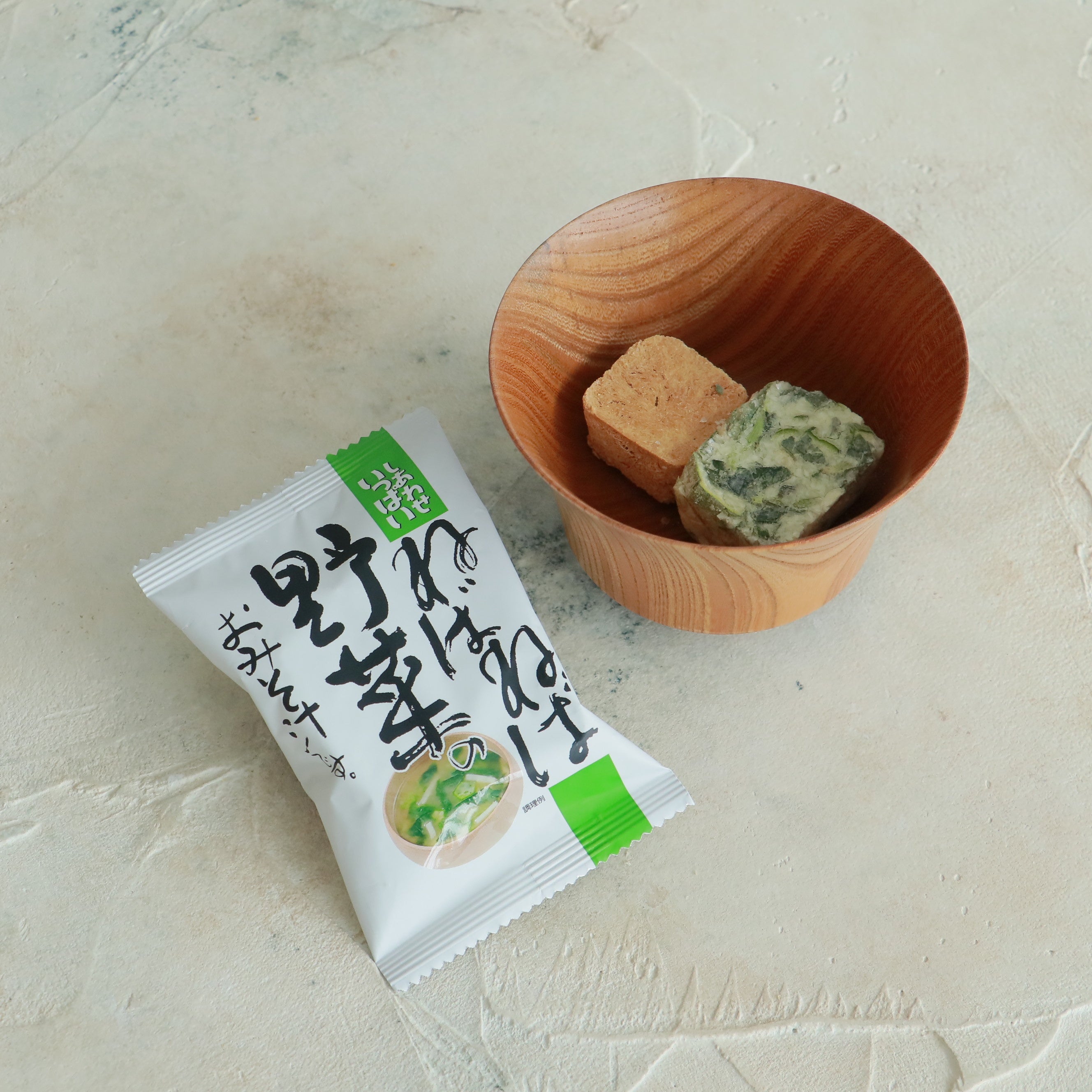 全国の数ある味噌蔵などから選び抜いた8種の味噌を独自にブレンド。全国各地で育まれた味噌を一杯に詰め込みました。家庭ではなかなかできないひと手間を加えたおみそ汁です。