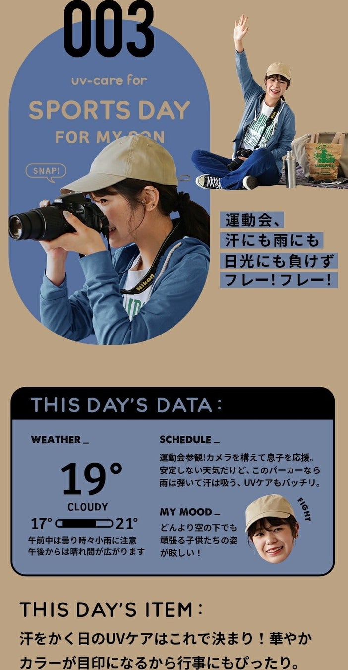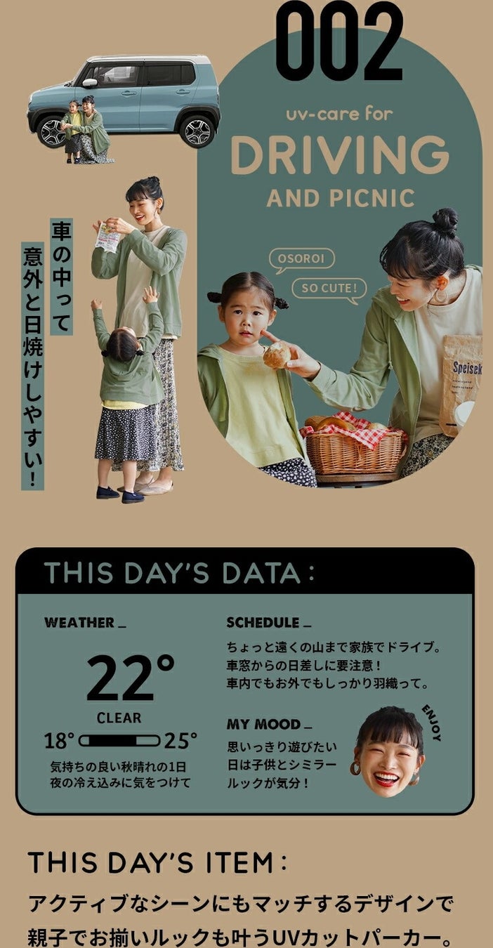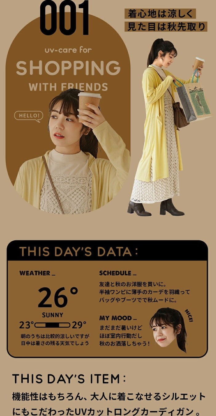 いろんなシーンで「羽織るだけで」紫外線対策を。気温差対策にもおすすめです。
