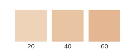 (20は明るめ肌、40は標準カラー、60はオークルカラーです。)