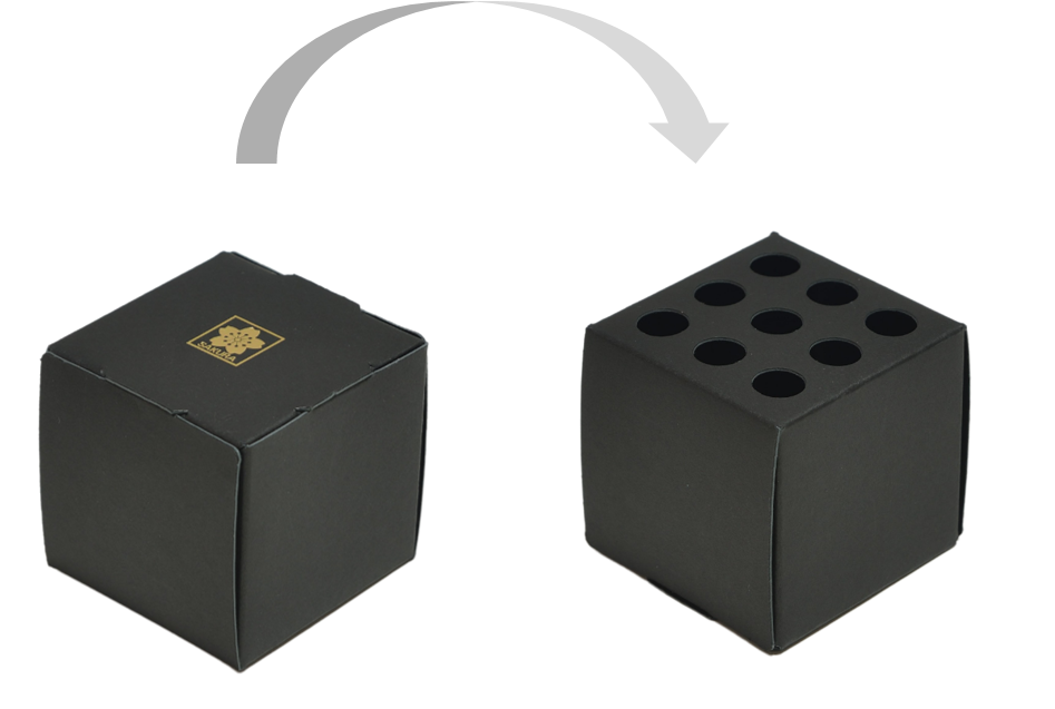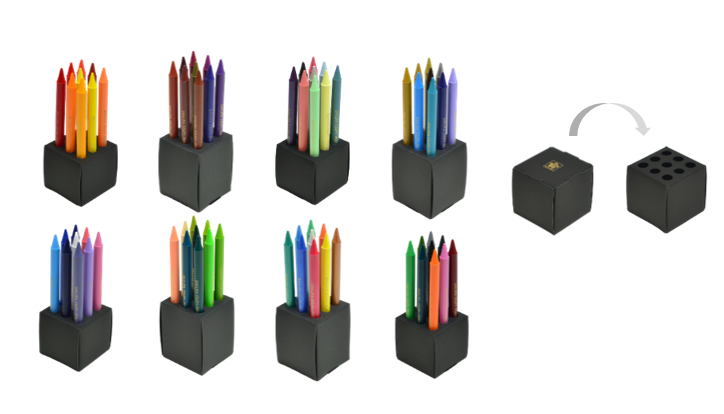 本商品は、華やかなパッケージデザインが特長で、キューブ型のボックス天面にクーピーを模したゴールドの印刷を施し、サイドに色鮮やかなクーピーが覗くアクリル窓をあしらいました。限定色17色(パールカラー12色、シャーベットカラー5色)も含まれており、プレゼントにもおすすめなプレミアムボックスです。中身は9つのユニットに分かれており、キューブ型ペンスタンドとして取り出して使うことが可能。色鮮やかな72色のクーピーは、お家のインテリアとしてもお楽しみいただけます。