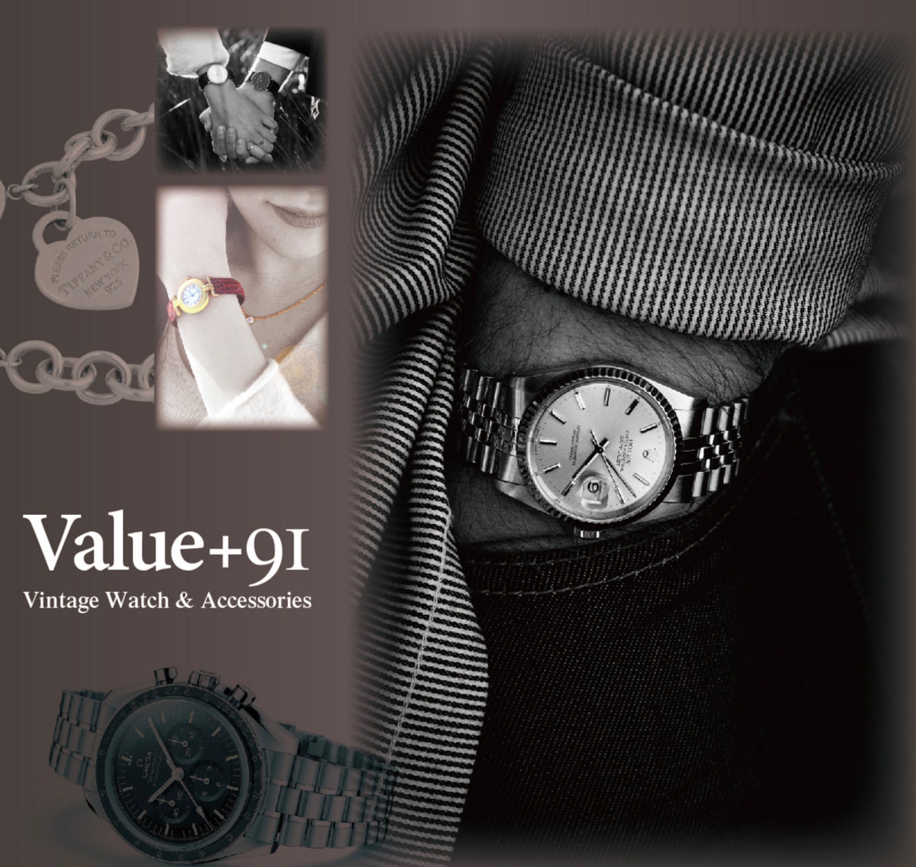 Value+91は、「時代を超えて、あなただけの名品へ」をテーマにヴィンテージ時計、アクセサリー、バッグを中心に、厳選された一流アイテムを取り揃えたヴィンテージショップです。ここでしか手に入らないアイテムやサービスを提供し、お客様にとって忘れられない時間となるよう心掛けております。