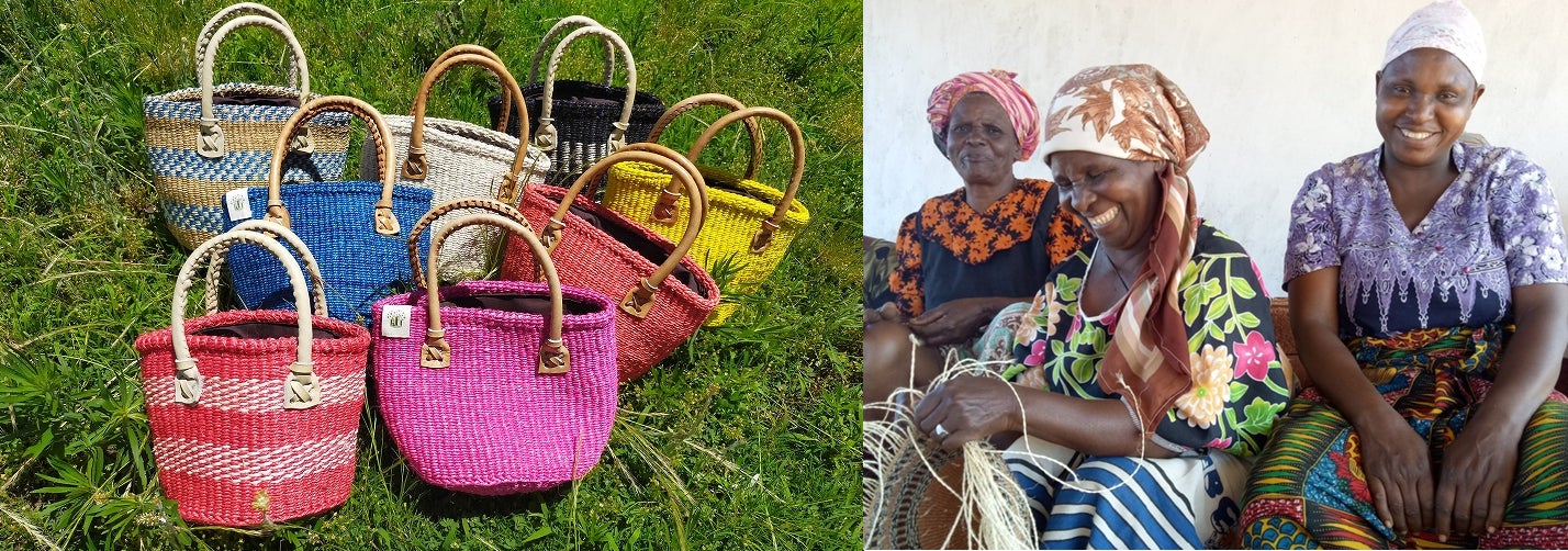 ケニアの自然素材、サイザル麻をつかったかごバッグ。ケニアはアフリカの中では女性の社会進出が進んでいる方だが、地方ではまだまだ男女の格差が大きいのが現実。女性たちは家事、子供や家畜の世話や農作業がメインだ。その中で手編みのサイザルバスケットは昔から彼女たちの大事な収入源となっている。彼女たちの笑顔を守るため、技術向上を目指したトレーニングやデザイン提案なども行いブランドとして活動する。
