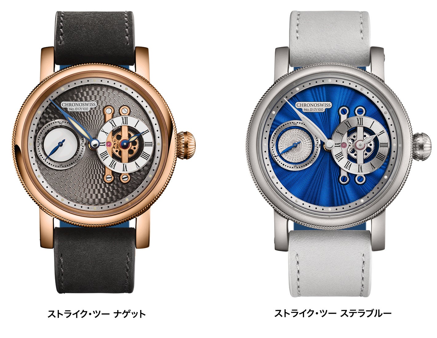 スイスの高級機械式時計クロノスイスは、「ストライク・ツー ナゲット」「ストライク・ツー ステラブルー」を全国の正規代理店にて発売いたします。