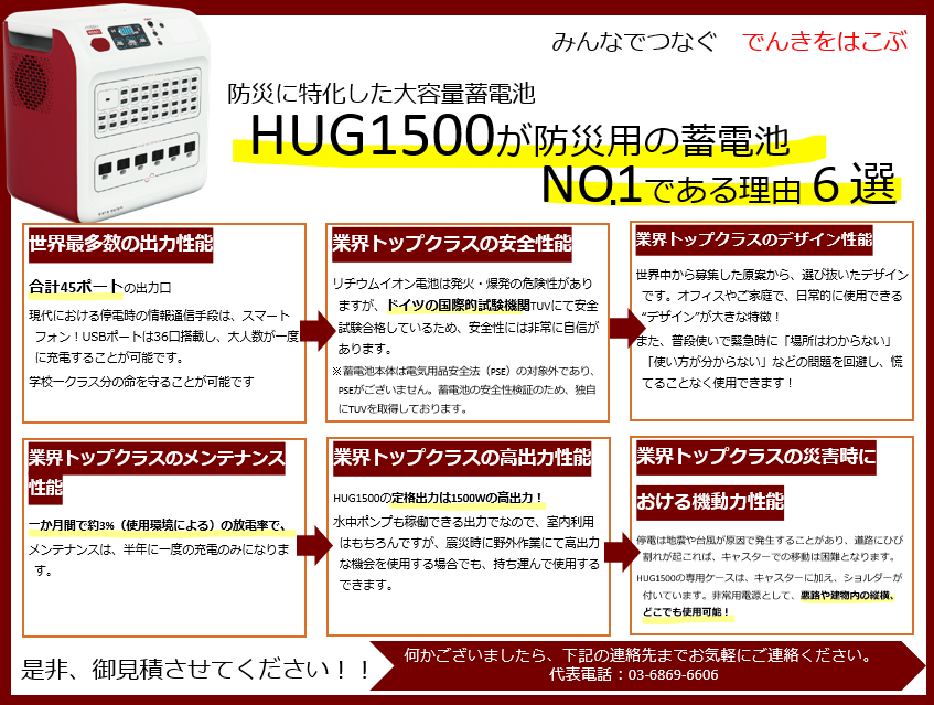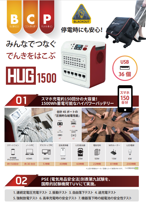 蓄電池・HUGシリーズは、従来より千葉県内の各施設をはじめ、全国の自治体での採用が進んでいる防災商材となっており、このイベントを契機に、一層の普及促進に寄与すると考えます。
