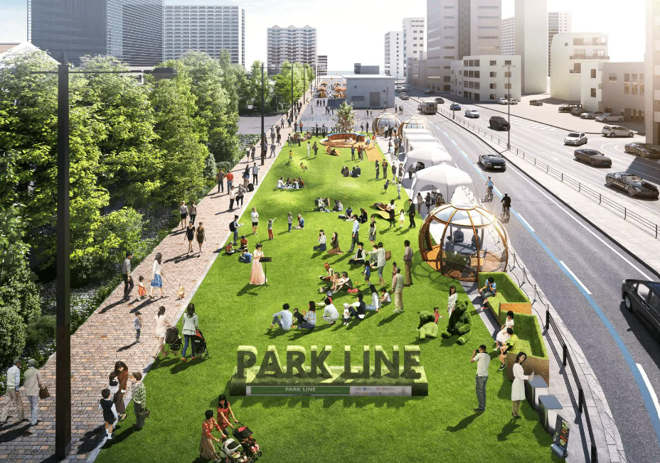 ※1「PARK LINE」モデル とは、民間マネジメントにより、①基盤整備(グリーンインフラ×インフラ分野のDX)、②交通(周遊)、③地域資源活用(文化創造、賑わい創造)、④地域経営、をまちづくり視点で一体的に取組むことで、公共空間(道路、公園、水辺等)の質的転換を図り、持続的な地域価値向上の実現を目指す取組み。地域連携・地域共創型の全国展開モデル。現在、横浜、千葉、福岡、長崎等で展開中。