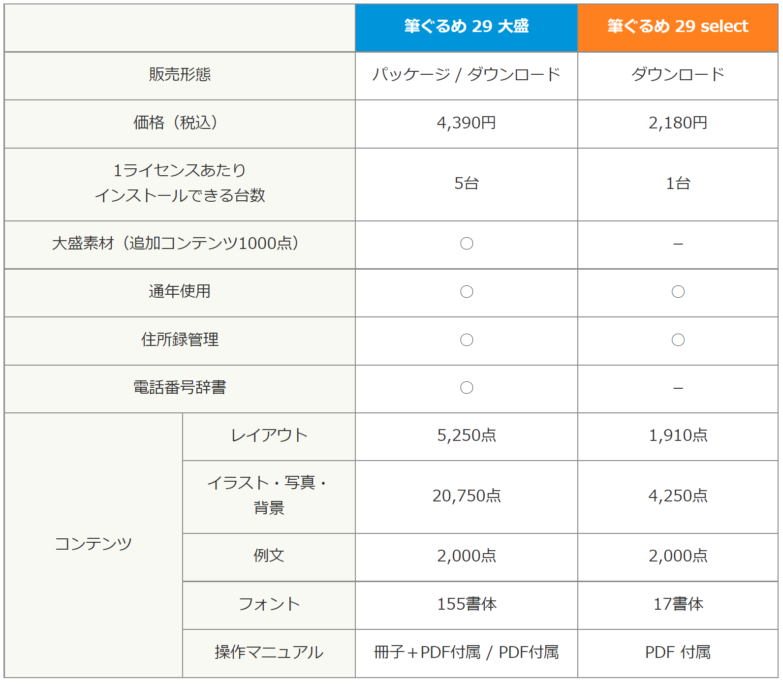 その他、各動作条件詳細および『筆ぐるめ 29 大盛』シリーズ 素材点数については、筆ぐるめ公式サイトにてご確認ください。