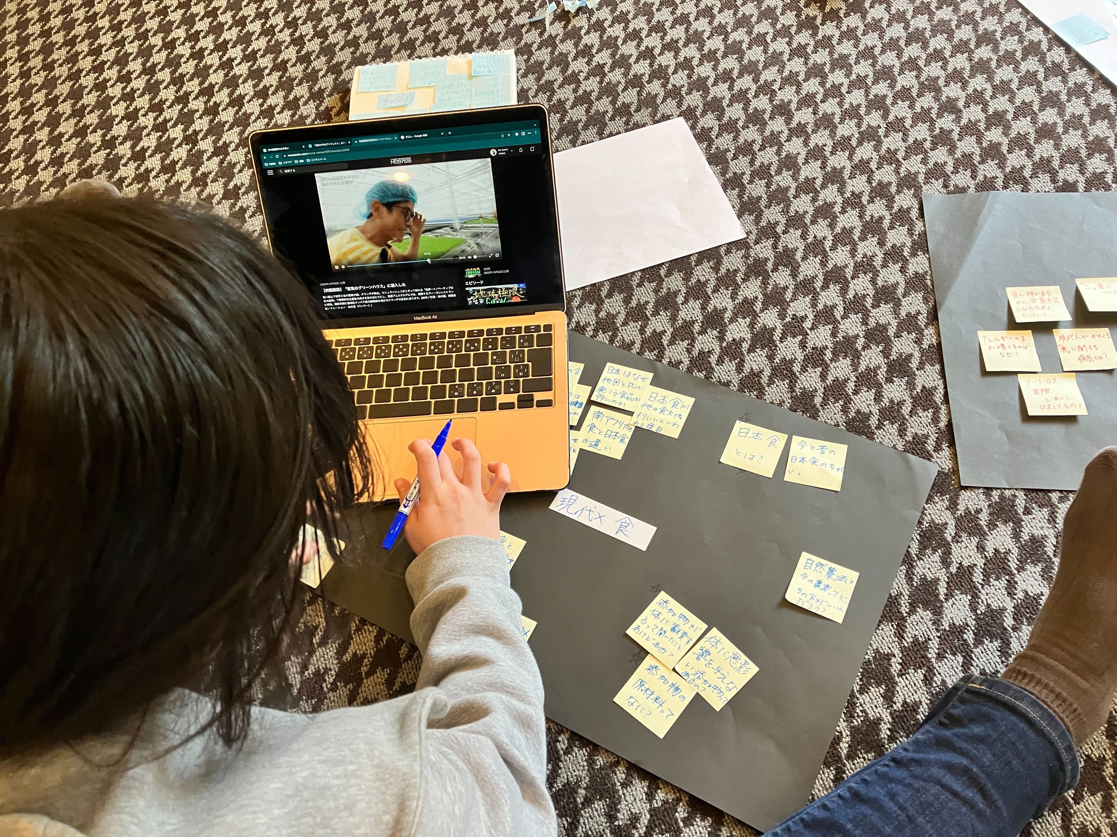 【写真3】「現代×食」をテーマにした探究学習でNewsPicksを活用する生徒(インフィニティ国際学院中等部)