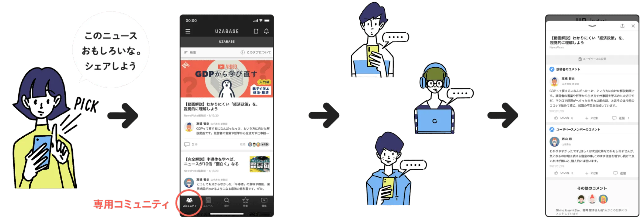 NewsPicks内に招待された教職員や生徒のみが参加できる専用空間(非公開)を開設し、安全な学びの場を提供。