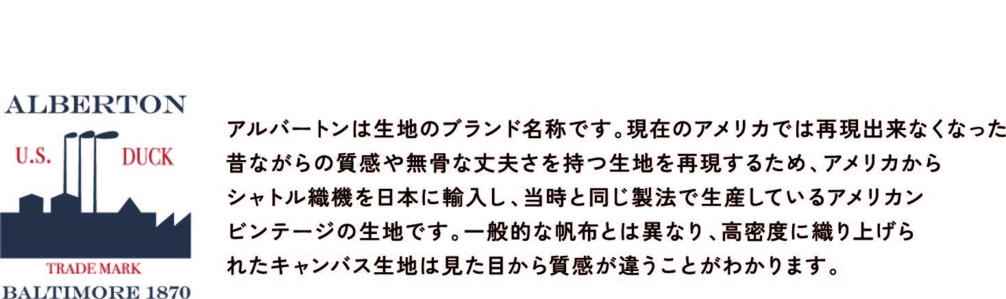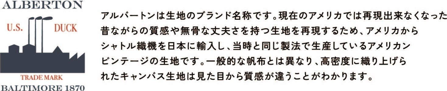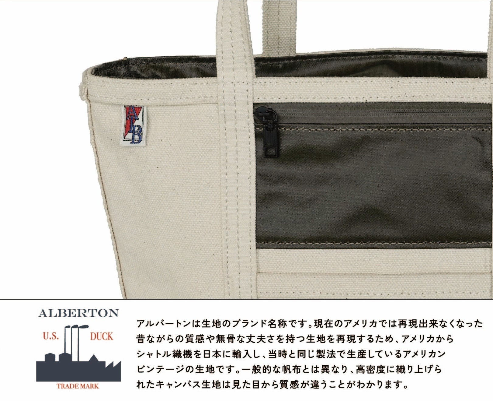 アルバートンブランドのキャンバス生地採用のトートバッグ。