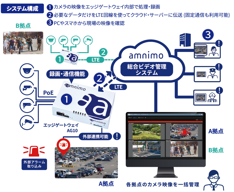 補足資料1:アムニモのエッジゲートウェイとクラウド型映像マネジメントソリューションによる広域映像監視のイメージ