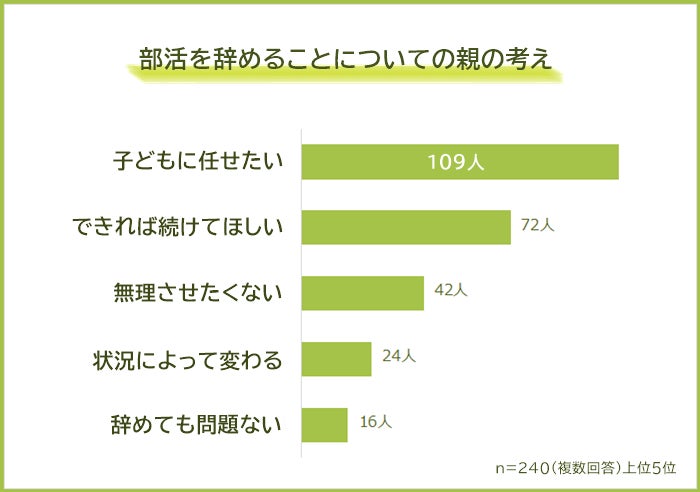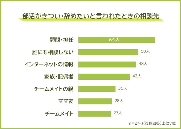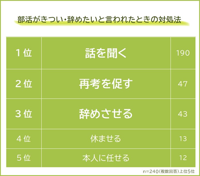 【部活がきつい・辞めたいと言われたときの対処法ランキング】中高生の親240人にアンケート調査