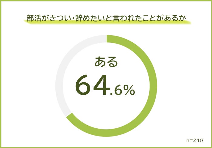 中高生の子どもをもつ親240人に、お子さんから「部活がきつい」「辞めたい」と言われたことがあるかを聞いたところ、半数以上が「ある」と回答しました。