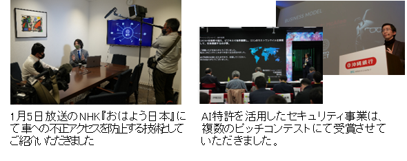 - AI特許は車への不正アクセスを防止する技術として1/5放送のNHK『おはよう日本』にてご紹介