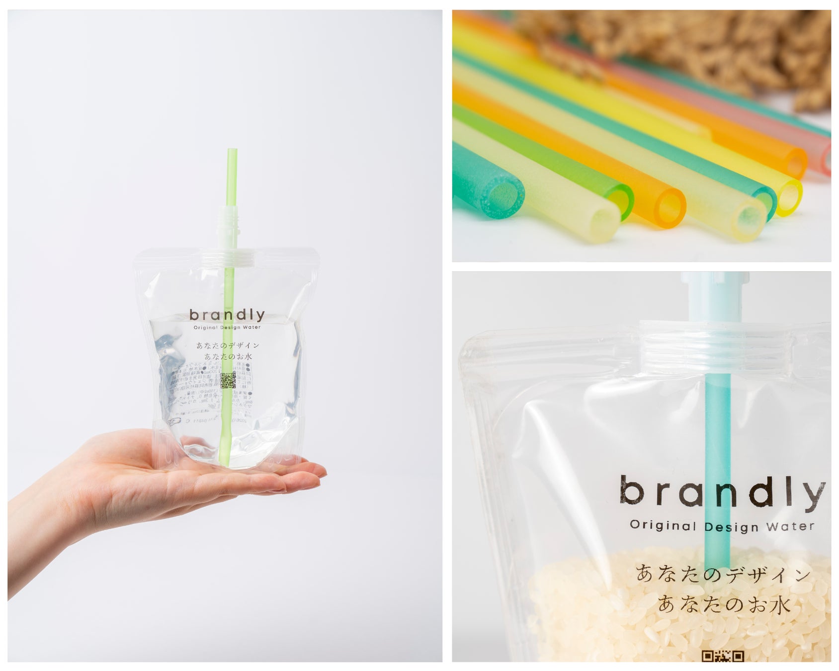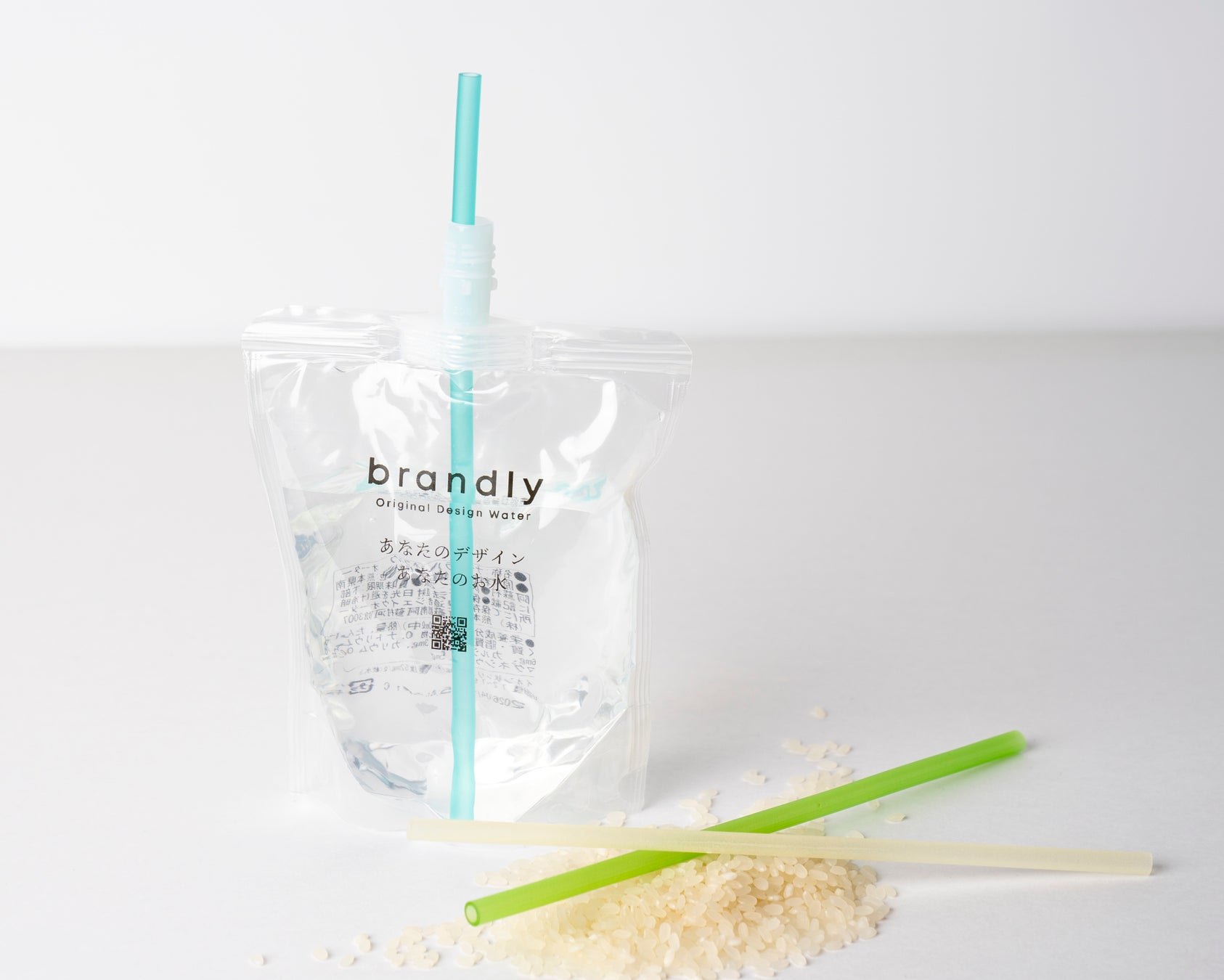 「brandlyパウチウォーター」+「UPay食べられる米ストロー」