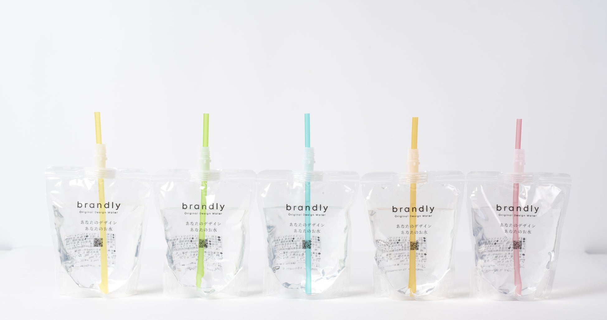 「brandly」は、熊本県産天然水を使用したオリジナルデザインウォーターです。企業ロゴやイベント名などを自由にデザインできるため、ノベルティや記念品、販促品として最適です。環境に優しいパウチ容器を採用し、従来のペットボトルに比べゴミ量を約71%削減できます。国内300社と取引実績あり。