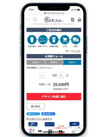 名入れスルーは「デザイン→見積依頼→注文」までスマホだけでワンストップで実現できるため