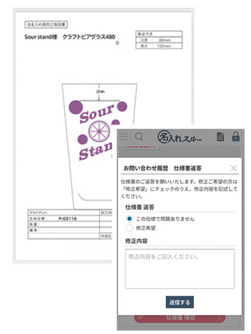 依頼したデザインの仕様書の確認やその返答など、すべてマイページ上で管理可能です。