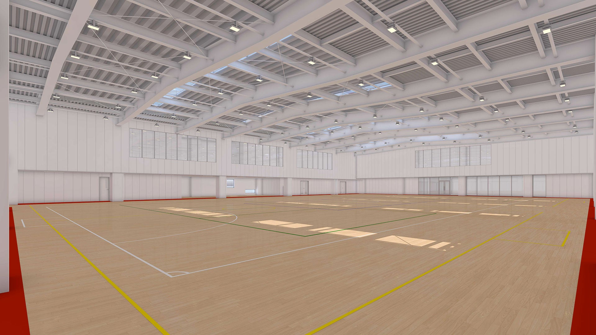 フットサル以外にもバレーボールができるように設計されております。また、併設された会議室には鏡が設置されており、ミーティングだけでなくダンスなどでも利用可能となっており、施設利用者の拡充を図ります。