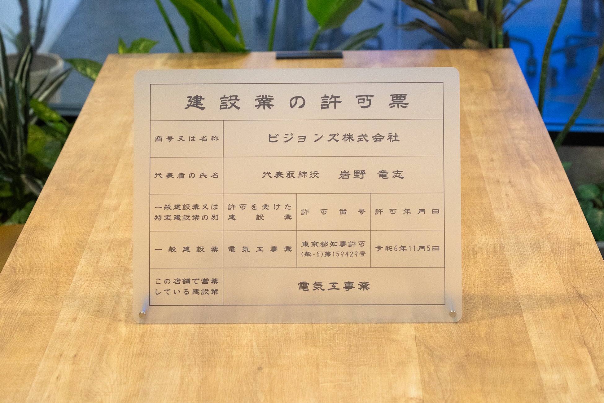 生活インフラのコンシェルジュ「ビジョンズ」が建設業許可証を取得