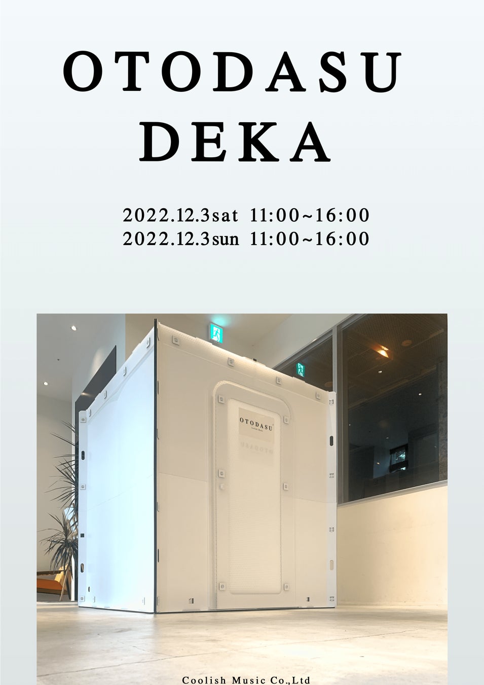 組立式簡易防音室OTODASUを開発・販売するCoolish Music株式会社は2022年12月3日、4日に、ゲーム配信用に開発した国内最大級の組立式簡易防音室OTODASU DEKAの展示体験会を開催します。