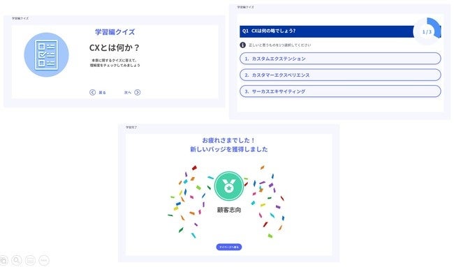 CXのポイントを解説したアニメーション動画でイメージを膨らませながら学習。見終わったらクイズで理解度を確認できます。