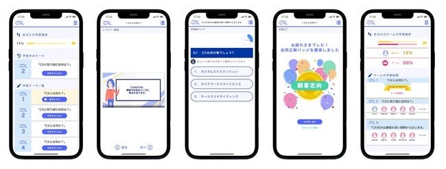 DX推進に欠かせないCXの考え方や進め方について、隙間時間を使って気軽に学べる実践学習アプリ「CX4DX」。数多くの社員が一斉に、基礎的な知識・スキル・マインドを身につけることができるツールとして、お客様からご好評頂いています。