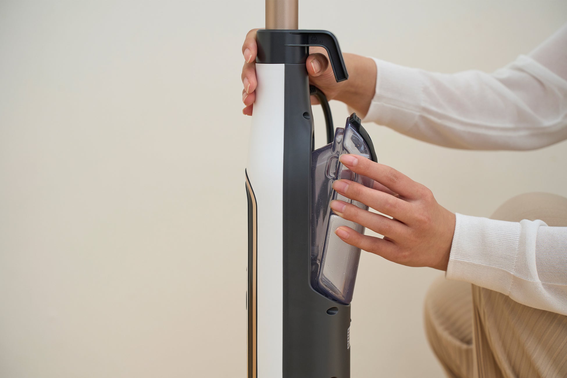 電源を入れてからスチームが出始めるまで、前モデルでは30秒かかっていましたが、20秒に短縮しました。待つことなく、すぐにお掃除を始められます。