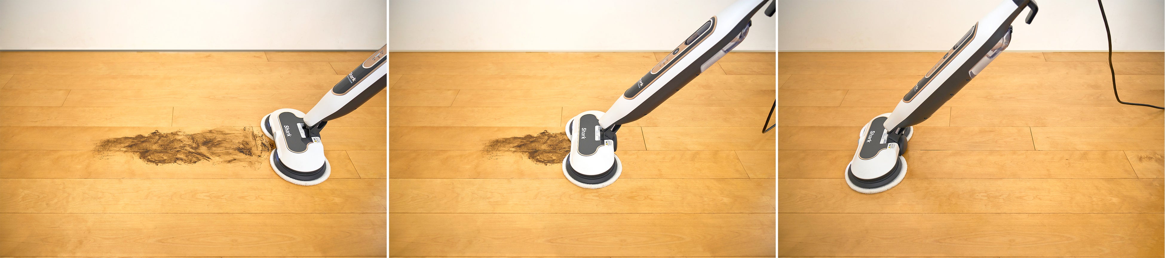 パッドが1分間に最大200回転することで、従来のスチームモップの2倍の効率で(約半分の 押し引き回数で)汚れを除去(※4)します。