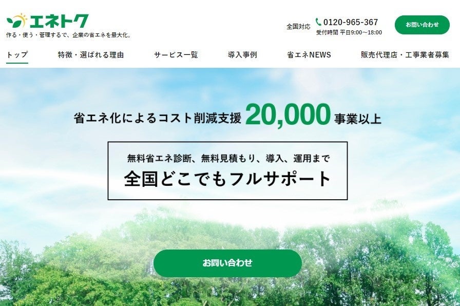 エネトクは「作る・使う・管理するで、企業の省エネを最大化」をテーマに、現在まで20,000件以上の事業者様のエネルギーコスト実績があります。