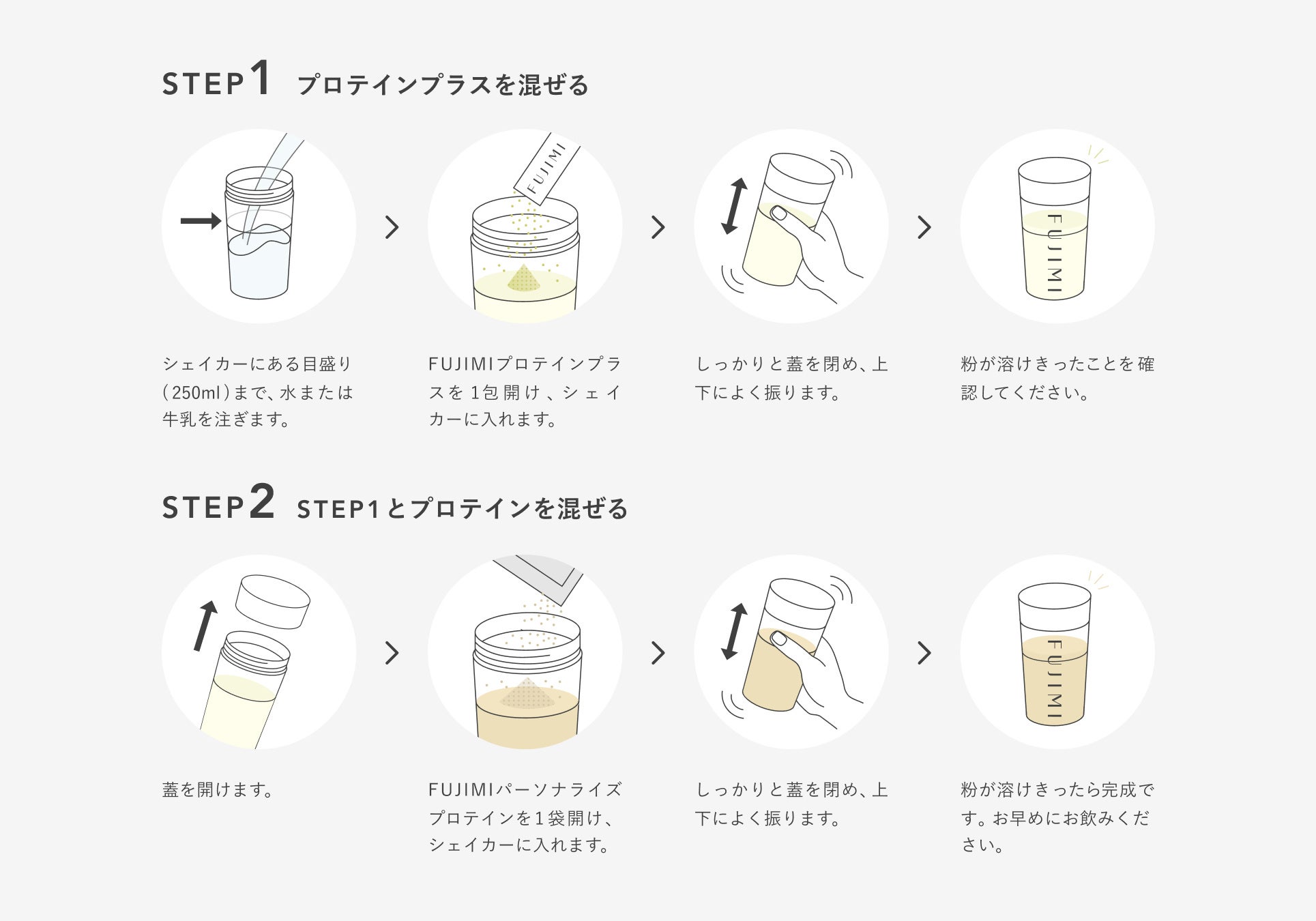 FUJIMIパーソナライズプロテインにプラスしてお飲みいただくことで、より理想のカラダづくりをサポートします。