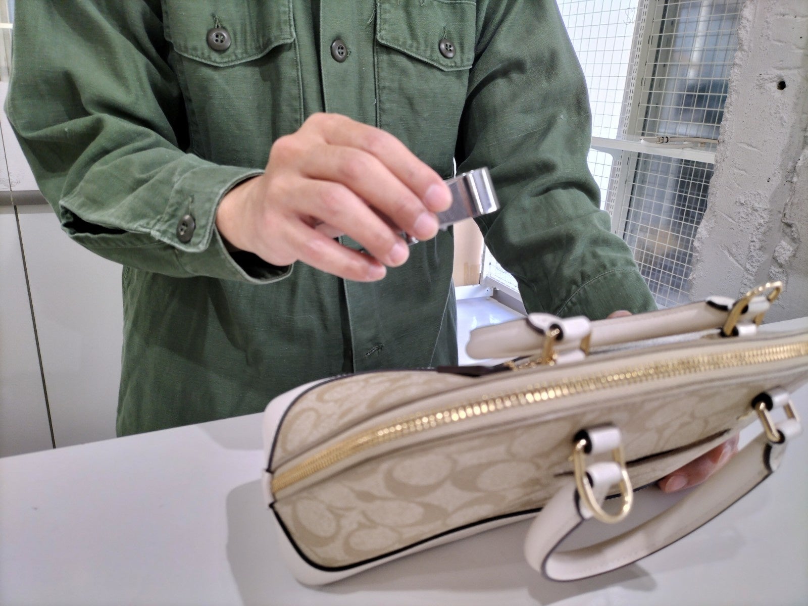 BAZZSTORE(バズストア)では創業からメンズ、レディースのカジュアルブランドを中心に買取を行ってきました。その中で、ハイブランドの取り扱い要望はとても多く頂いておりました。しかし、ブランドの特性上、精巧な模造品や偽物といった商品が流通しているケースが多数あり、当社では取り扱いが難しいといった判断をしていました。店舗拡大をする過程で、その要望が減ることはなく、むしろ年数を追うごとに、「早く取り扱いを開始してほしい」「他のリユースショップでは適正価格をつけて貰えない」といった声を多く聞くようになりました。そこで正しい検品と正しい買取価格をつけるべく、リユース業界では希少な商品管理専門の部署を設立し、ノウハウを培っていくゼロからのスタートとなりました。まず商品をたくさん触ることから始め、模造品が多いとされているストリートブランドや、インポートブランドの商品を1ヵ月で約300点検品を行い、検品項目の必要箇所をデータとして保管する為に写真撮影を開始しました。検品、撮影を続けているうちに基準外商品にも慣れていき、段々と感覚や知識がついていき、その頃には写真データが10万枚を超えて、検品と写真整理に追われる日々でした。この莫大なデータを整理しているうちにブランド独自の特徴が見えていき、それまではルーペで全て見えているつもりだった物に疑問を抱くようになりました。本当に見えているのか、もっと新たな発見があるのではないか、もっと特徴があるのではないか、検品する以上もっと探求するべきではないのか、その思いからマイクロスコープを導入しました。やはりルーペでは見切れない箇所が存在しました。その後も多くの商品の観察、比較を続け、資料化を行いようやく待望だったハイブランドの買取・販売が現実的になりました。部署を設立時は一人だった鑑定士が、新たにメンバーも増え、部署を設立し2年がたちます。この間に検品した商品の真贋に関するお問い合わせはゼロという快挙も成し遂げました。2年間地道に検品と向き合ってきたからこその結果だと思います。