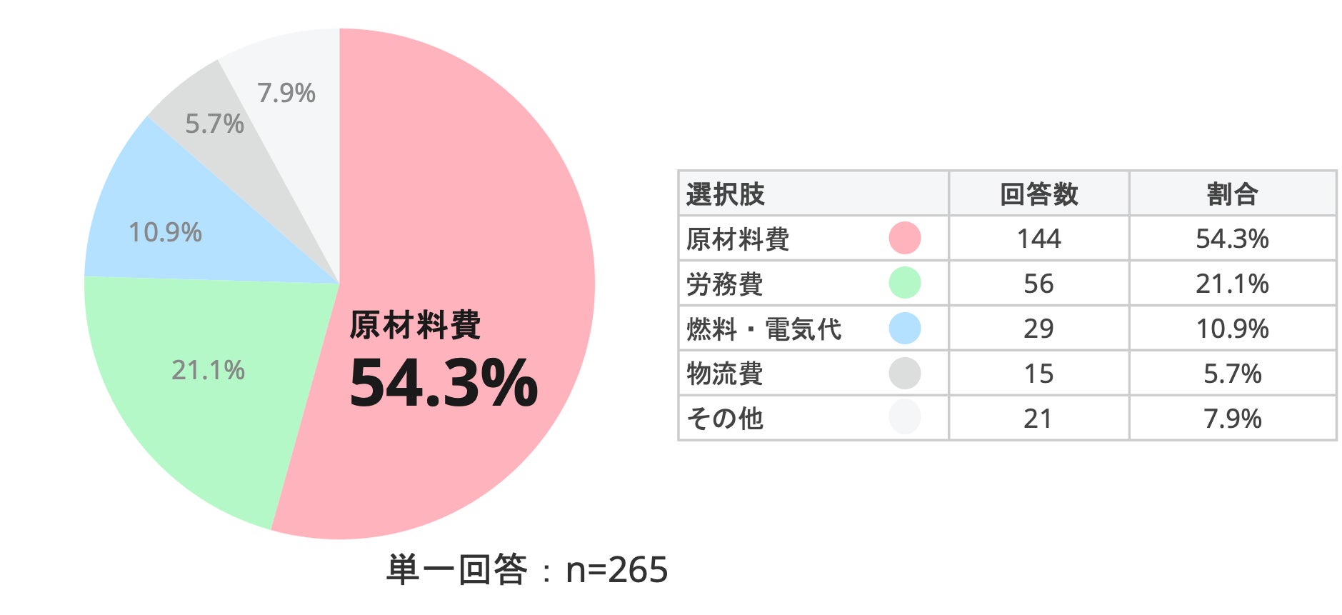 Q1. 原材料費や動燃費、労務費などの上昇の影響を受けて、調達コストは増加していますか?