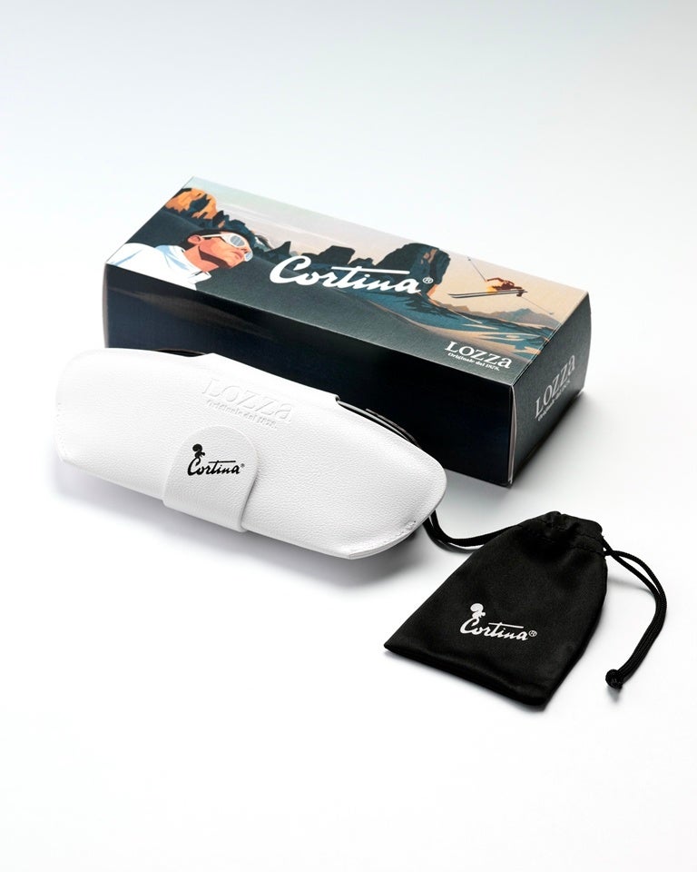 各モデルにはヴィンテージムードを取り入れた専用パッケージが付属。コルティナの町のシンボルである「リス」のイラストがついた特別ケースとグラスコードです。