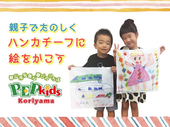 親子でたのしくハンカチーフに絵をかこうイベント 元気な遊びの広場「PEP Kids Koriyama(ペップキッズ郡山)」にて 7月26日開催