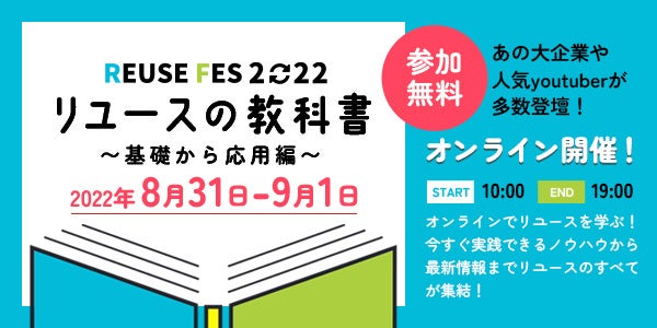 今年は更にスケールアップ!リユースでサステナブルな社会を目指すイベント「リユースフェス2022」、オンライン+体験型イベントで8/31(水)より3日間開催